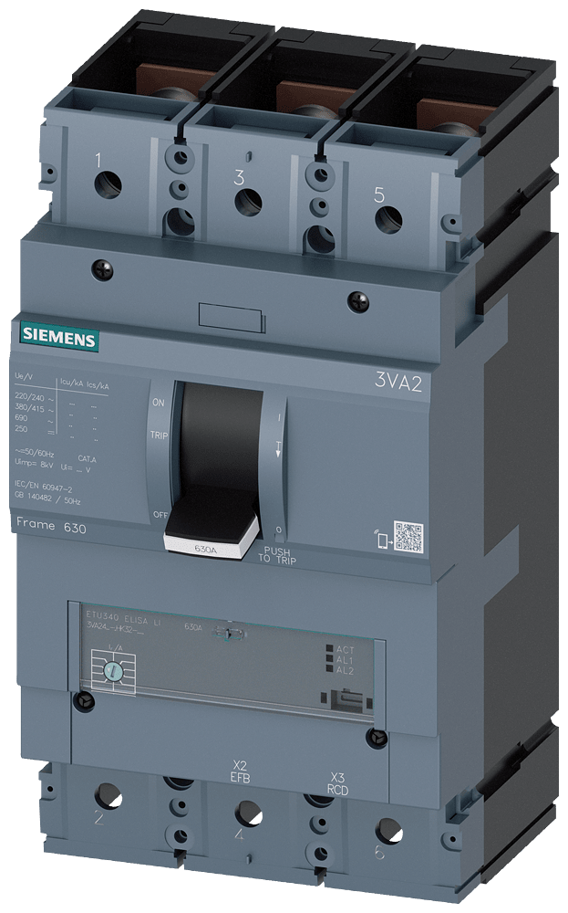 SIEMENS - SIE3VA24505HK320AA0 INT.AUT.3VA 500A 3P 55KA ETU3 ELISA L/T - 3VA24505HK320AA0
