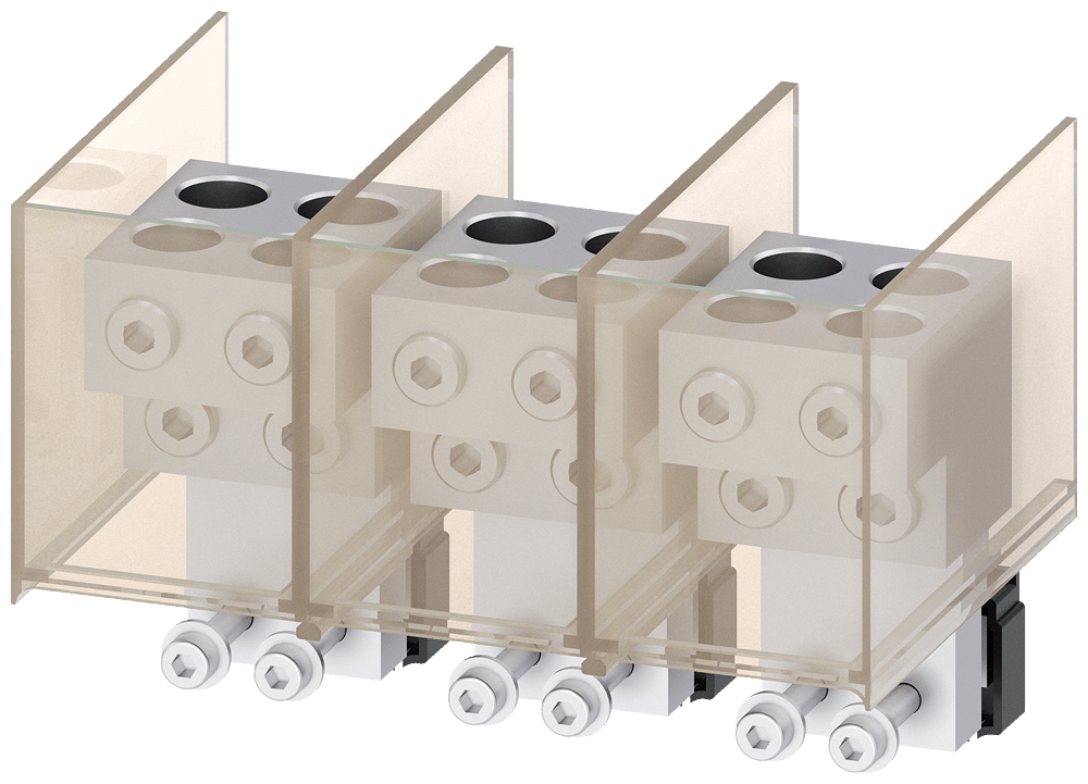 morsetto di collegamento per conduttore circolare TA6.3 4 x 1/0…500 kcmil per interruttore automatico 100% nominale per 4 cavi; 3 pz. accessori per: interruttori automatici a 3 poli 3VA57/67 Interruttori automatici scatolati SENTRON 3VA - un sistema. Pertutte le applicazioni.