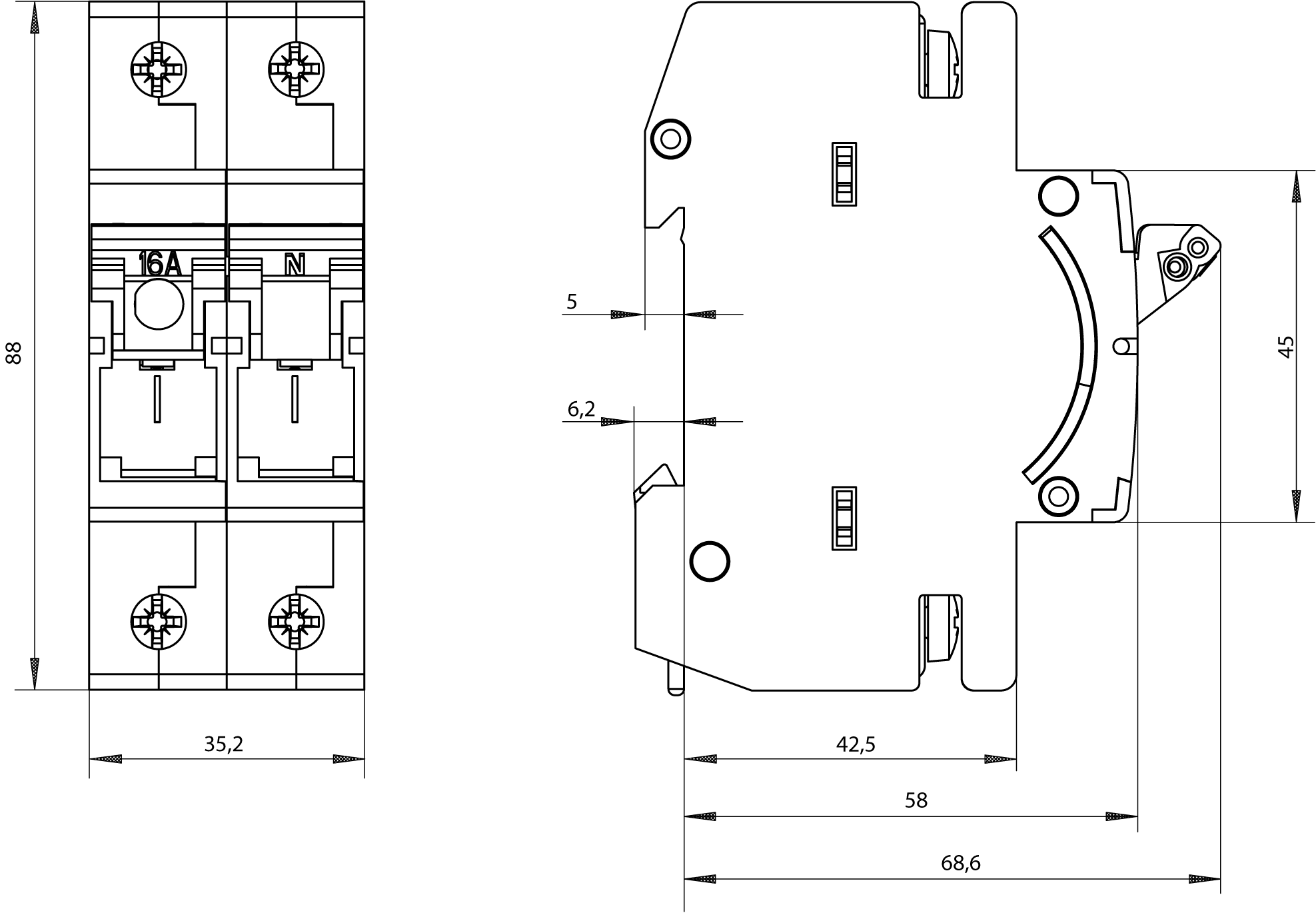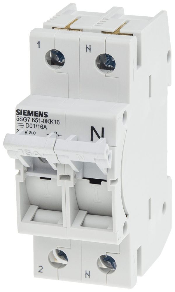 MINIZED, sezionatore sottocarico a fusibili, D01, a 2 poli, 1P+N, In: 16 A, Un AC: 230 V senza cartuccia fusibile SENTRON 5SG7 . Dispositivi di protezione SENTRON - Una scelta sicura.