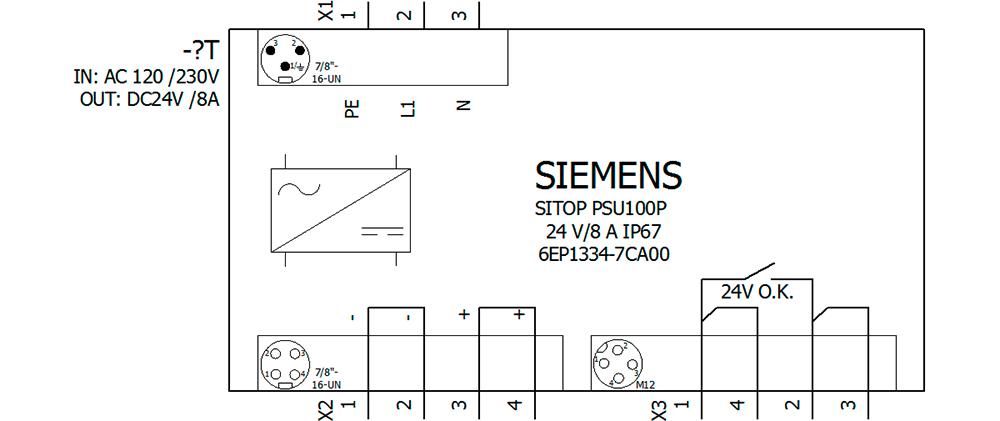 SIEMENS - SIE6EP13347CA00 SITOP PSU100P 24 V/8 A IP67 - 6EP13347CA00