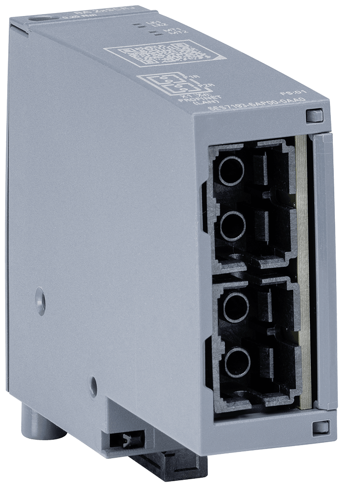 SIMATIC ET 200SP, BusAdapter (BA 2xSCRJ, 2 collegamenti FO SCRJ Con il SIMATIC ET 200SP, Siemens offre un sistema di periferia decentrata e multifunzionale che può essere facilmente messo in servizio grazie alla sua forma costruttiva salvaspazio. È omologato per il grado di protezione IP20 e progettato per linstallazione in una cassetta di distribuzione compatta. Il sistema assicura la massima flessibilità, consentendo di sostituire in ogni momento rapidamente e facilmente i moduli grazie al Multi Hot Swapping. Inoltre il SIMATIC ET 200SP vi offre una vasta gamma di canali di comunicazione, sia diversi che veloci. Grazie allintegrazione del modulo di interfaccia MultiFieldbus IM155-6MF, potete sempre reagire con flessibilità e utilizzare il protocollo ottimale per la vostra applicazione, poiché questa funzione supporta diversi protocolli Ethernet. Il montaggio e il service sono semplificati da un sistema di identificazione unitario, basato su targhette identificative di riferimento e sullassegnazione deipin con codifica a colori. Siemens vi assicura sistemi a prova di futuro con lintegrazione di prodotti di automazione innovativi e allo stesso tempo di lunga durata, infatti in qualità di esperti di settore investite già oggi nelle tecnologie di domani eridefinite così gli standard di mercato. La continua disponibilità dei dati, la flessibilità dei casi applicativi e le versatili opzioni di integrazione assicurano le ottime prestazioni dei prodotti ET 200. La configurazione scalabile e ottimizzata a livello di costi di una stazione ET 200SP è garantita dallampia gamma di moduli I/O. Oltre alle unità di ingressi e uscite digitali e analogiche sono disponibili anche varianti fail-safe per applicazioni fino a SIL 3 / PLe. Ciò vale pure per gli avviatori motore integrati, che sono adatti per motori fino a 5,5 kW. Contatori di energia per la misura e lanalisi del consumo energetico, master IO-Link (V1.1.) nonché molti altri moduli di comunicazione e tecnologici permettono di adattare il sistema ad ogni compito di automazione.