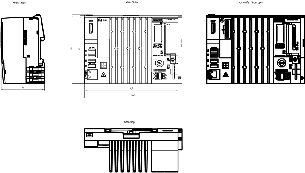 SIMATIC ET 200SP Open Controller, CPU 1515SP PC2 TF, 8 GB RAM (apparecchiatura di base 6ES7677-2DB40-0AA0), 128 GB CFast con Windows 10 IoT Enterprise LTSC 2021 64bit e S7-1500 failsafe Software Controller CPU 1505SP TF V3x preinstallato; interfacce: 1x slot CFAST, 1x slot SD/MMC, 1x collegamento per ET 200SP BusAdapter PROFINET, 1x 10/100/1000 MBit/s Ethernet, 2x USB 3.0, 2x USB 2.0, 1x DisplayPort; documentazione su CFast, Restore-Image su CFast Con il SIMATIC ET 200SP, Siemens offre un sistema di periferia decentrata e multifunzionale che può essere facilmente messo in servizio grazie alla sua forma costruttiva salvaspazio. È omologato per il grado di protezione IP20 e progettato per linstallazione in una cassetta di distribuzione compatta. Il sistemaassicura la massima flessibilità, consentendo di sostituire in ogni momento rapidamente e facilmente i moduli grazie al Multi Hot Swapping. Inoltre il SIMATIC ET 200SP vi offre una vasta gamma di canali di comunicazione, sia diversi che veloci. Grazie allintegrazione del modulo di interfaccia MultiFieldbus IM155-6MF, potete sempre reagire con flessibilità e utilizzare il protocollo ottimale per la vostra applicazione, poiché questa funzione supporta diversi protocolli Ethernet. Il montaggio e il service sono semplificati da un sistema di identificazione unitario, basato su targhette identificative di riferimento e sullassegnazione dei pin con codifica a colori. Siemens vi assicura sistemi a prova di futuro con lintegrazione di prodotti di automazione innovativi e allo stesso tempo di lunga durata, infatti in qualità di esperti di settore investite già oggi nelle tecnologie di domani e ridefinite così gli standard di mercato. La continua disponibilità dei dati, la flessibilità dei casi applicativi e le versatili opzioni di integrazione assicurano le ottime prestazioni dei prodotti ET 200. Il SIMATIC ET 200SP Open Controller, come primo controllore di questo tipo, riunisce le funzioni di un Software Controller basato su PC con visualizzazione, applicazioniPC e I/O (Input/Output) centrali in ununica apparecchiatura compatta.