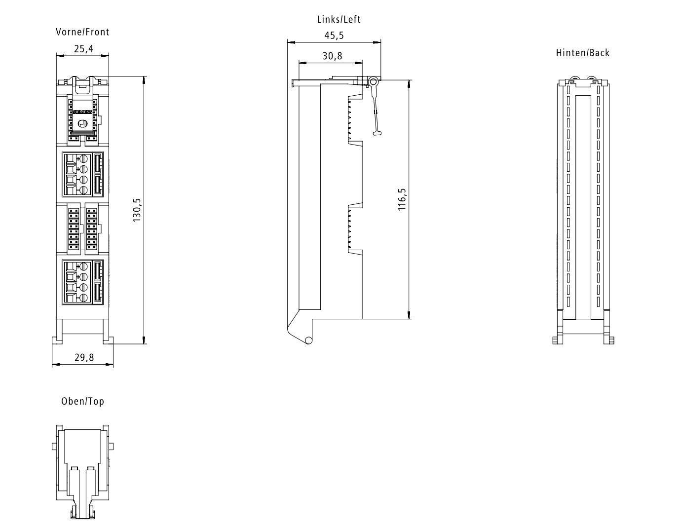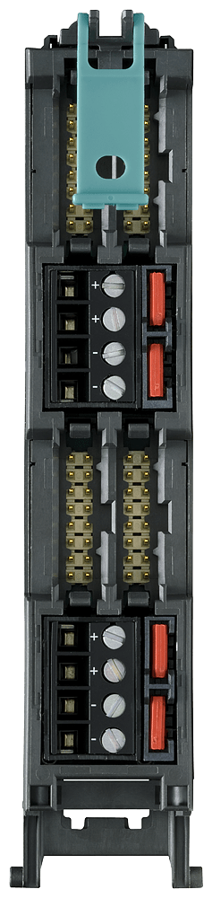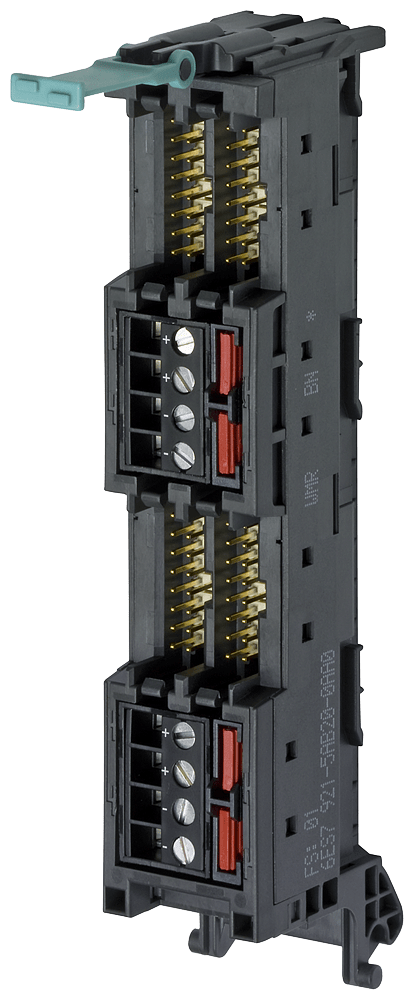 modulo connettore frontale con 4 x 16 poli connessione IDC per (digitali) 32 unità I/O dellS7-1500, alimentazione di potenziale tramite morsetti a vite Il modulo connettore frontale per SIMATIC S7-1500 con morsetti a vite per lalimentazione di potenziale, per il collegamento di cavi a 16 poli è un connettore frontale modificato per il collegamento ad una unità I/O digitale. Questo viene innestato sullunità da cablare al posto del connettore frontale. Qui vengono innestati i cavi di collegamento e quindi collegati con il modulo di connessione. Questo modulo connettore frontale modificato è parte integrante del collegamento completamente modulare di SIMATIC TOP connect per il cablaggio di sistema più rapido e più sicuro. Oltre ad un ridotto onere di cablaggio è possibile una riduzione significativa delle fonti di errori. I sensori e gli attuatori della periferia vengono addotti ai moduli di connessione di SIMATIC TOP connect e da questi, tramite cavo di collegamento e modulo connettore frontale, collegati con il SIMATIC S7-1500.