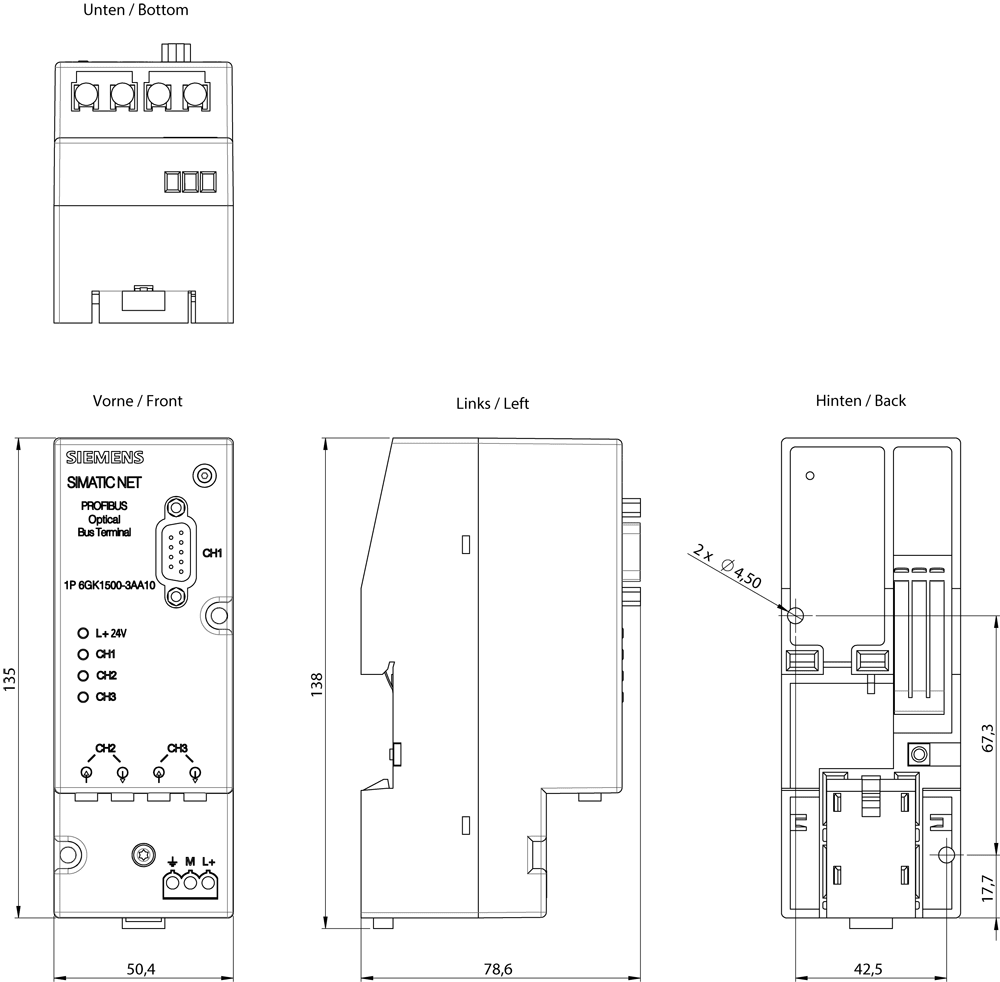 SIEMENS - SIE6GK15003AA10 OPTICAL BUS TERMINAL - 6GK15003AA10