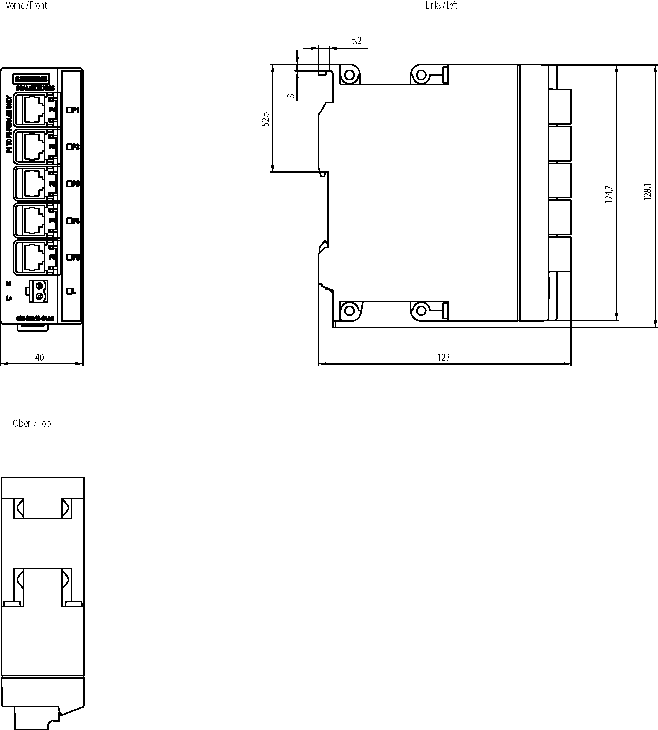 SCALANCE X005, IE Entry Level Switch unmanaged 5 x 10/100 Mbit/s, porte RJ45, diagnostica LED, IP30, DC 24 V alimentazione di tensione, collare di ritenzione conforme a PROFINET, campo di temperatura ampliato -40 °C ..... +75 °C, manuale disponibile comedownload . SCALANCE X005 unmanaged switch compatto, 5x RJ45 da 10/100 Mbit/s per la semplice interconnessione di macchine in rete. Funzionali, compatti e adatti alluso industriale: gli switch SCALANCE X005 offrono sempre lo switch Compact Ethernet giustoper garantire una semplice interconnessione di macchine in rete. Grazie a varianti che possono avere da 5 a 8 porte è possibile realizzare senza problemi anche trasmissioni dati nellordine dei gigabit. I Compact Switch Module (CSM) permettono di realizzare un collegamento economico ai controllori SIMATIC e quindi lintegrazione delle macchine negli impianti esistenti. Con i nostri switch unmanaged e CSM robusti e facili da utilizzare, è possibile creare reti Industrial Ethernet a costi vantaggiosi.