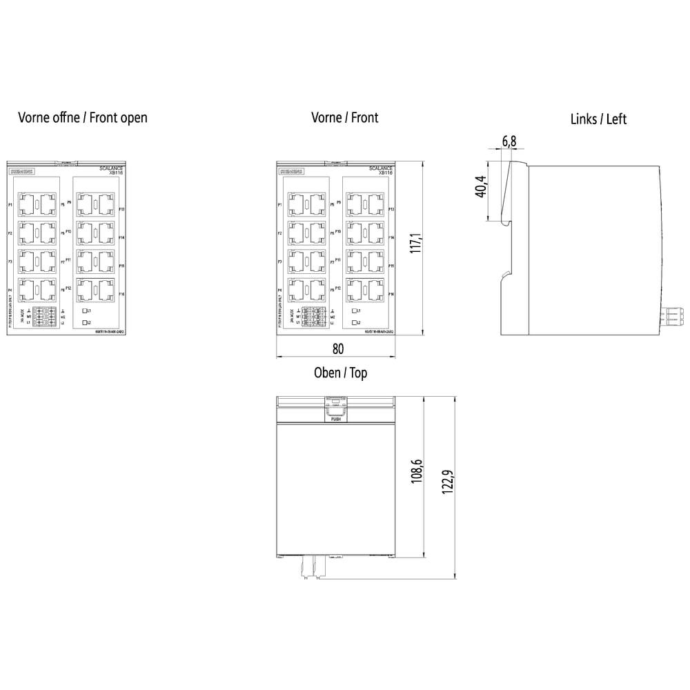 SCALANCE XB116 unmanaged IE Switch, 16x porte 10/100 Mbit/s porte RJ45; per la configurazione di piccole strutture a stella e strutture lineari; diagnostica LED, IP20, alimentazione di tensione ridondante, AC/DC 24V manuale disponibile come download . SCALANCE XB116, unmanaged switch, 16x porte RJ45 da 10/100 Mbit/s. Economico, semplice e versatile: uno SCALANCE XB116 è lo switch ideale per garantire una infrastruttura di rete affidabile e robusta. Con SCALANCE XB116 si trova sempre il giusto unmanaged switch per interconnessioni in reti elettriche e ottiche. Grazie allhardware potente e alle funzioni avanzate, assicura lintegrazione diretta e la scalabilità per qualsiasi ambiente di rete. Con la nuova serie di unmanaged switch SCALANCE XCM-100 è possibile anche realizzare applicazioni Power over Ethernet. I nostri unmanaged switch e Media-Converter sono perfetti per limpiego in vicinanza delle macchine nelle reti industriali e resistono anche alle condizioni ambientali gravose.