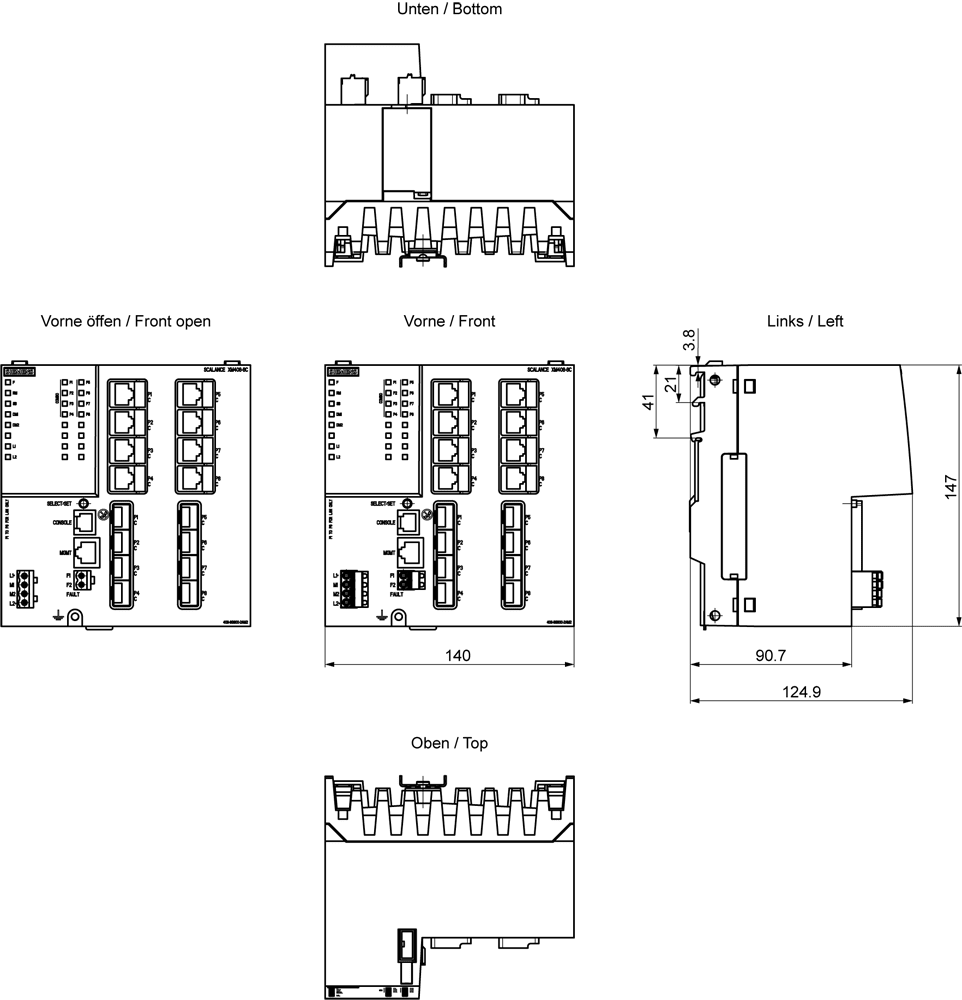 SCALANCE XM408-8C; managed modular IE Switch; 8x RJ45 da 10/100/1000 Mbit/s; 8x 100/1000 Mbit/s SFP; comprende 8 porte Combo; 8 porte in totale utilizzabili; ampliabile a 24 elettriche o ottiche; montaggio: guida DIN/profilata S7, PROFINET IO Device; funzioni di ridondanza; Office Features (RSTP, VLAN, IGMP,..); C-PLUG nella dotazione di fornitura; layer 3 disponibile con Key-Plug . SCALANCE XM408-4C managed, switch modulare di Layer 2, 8x porte RJ45 da 10/100/1000 Mbit/s, 8x porte SFP da 100/1000 Mbit/s, con 8 porte combo per reti dimpianto flessibili e altamente performanti. Benvenuti nel mondo degli switch per il quadro elettrico ad alte prestazioni SCALANCE XM408-4C. Elevato numero di porte, elevata velocità di trasmissione, supporto della fibra ottica, conduttori in rame e trasmissione Power over Ethernet: I nostri switch di Layer 2 SCALANCE XM408-4C offrono una maggiore flessibilità per le reti e rispondono ai requisiti sempre maggiori delle reti di comunicazione. Grazie alla funzione opzionale di switching di Layer 3, la rete può essere realizzata specificamente per la rispettiva applicazione. I rispettivi Port Extender consentono di aumentare fino a 24 il numero di porte degli apparecchi di base. Lo SCALANCE XM408-4C è la soluzione ideale per i requisiti di rete più severi.