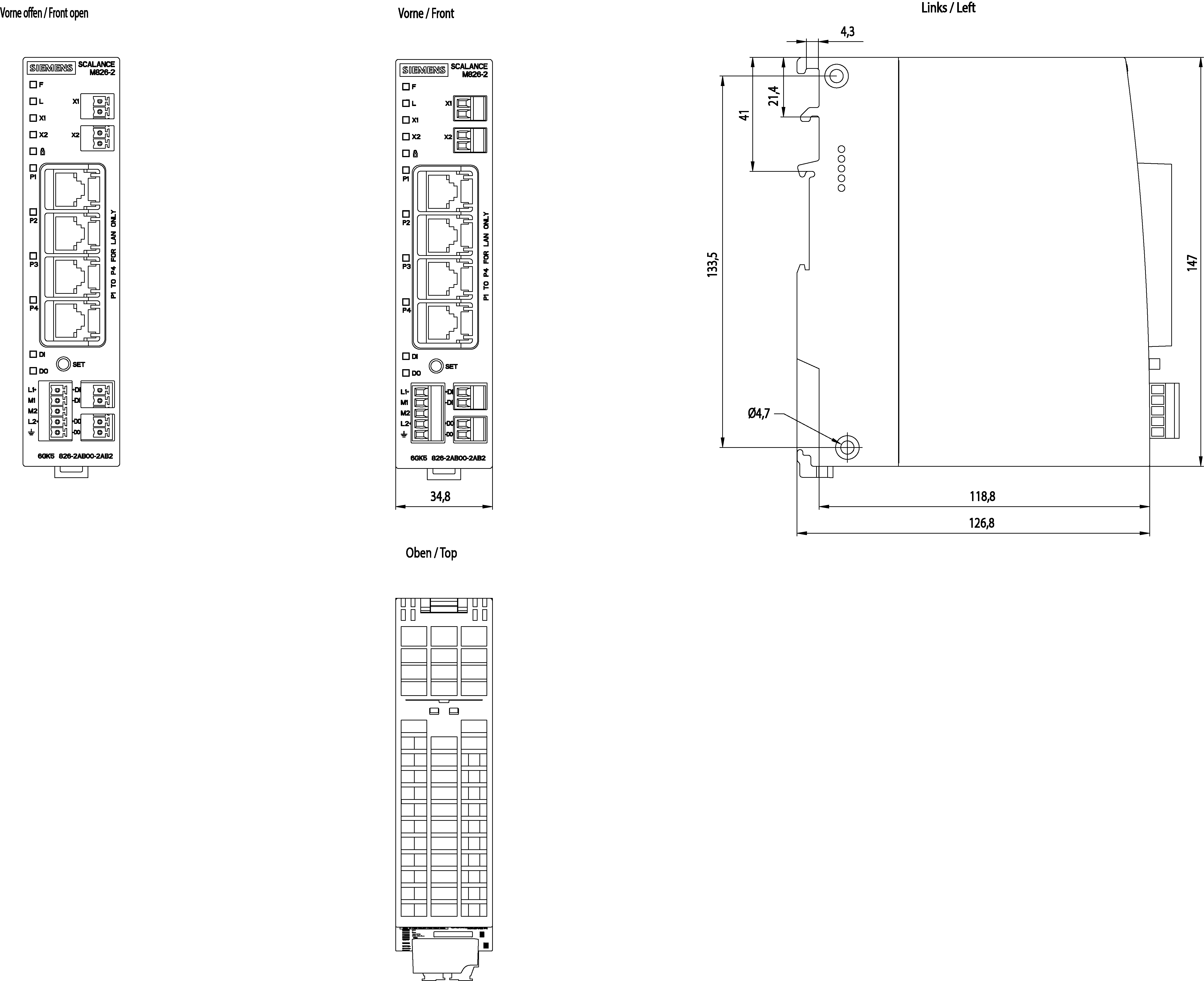 router SHDSL SCALANCE M826-2; per la comunicazione IP tramite cavi a 2 e 4 conduttori di apparecchiature di automazione basate su Ethernet ; topologia SHDSL: punto a punto, bonding, linea Bridge Mode; Routing Mode con VPN, firewall, NAT; switch a 4 porte; 1x ingresso digit., 1x uscita digit. SCALANCEComponenti di reteM826-2 SHDSLtopologia SHDSL: punto a punto, Bonding, Line Bridge Mode, Routing Mode con VPN, firewall, velocità di trasmissione: 10 Mbit/s, 100 Mbit/s, con trasmissione SHDSL max. 15,3 Mbit/s, switch a 4 porte (RJ45), NAT, 1x ingresso digitale, 1x uscita digitale, morsettiera, grado di protezione IP20.modem SHDSL per la comunicazione IP tramite cavi a 2 fili e a 4 fili di sottoreti basate su Ethernet e controllori programmabili.modem SHDSL per il collegamento economico e sicuro disottoreti basate su Ethernet e apparecchiature di automazione tramite cavi a due o più conduttori. Adatto allimpiego nellindustria e nei settori connessi allindustria.Elevati standard di sicurezza con firewall (stateful packet inspection) e collegamenti VPN (IPSec) come parte integrante del concetto di Industrial Security. Lapparecchiatura supporta lo standard ITU-T G.991.2 o SHDSL.biz (Single-pair high-speed digital subscriber line). Per la vostra protezione dellinvestimento: possibilità di ulterioreutilizzo di infrastrutture cablate esistenti per la trasmissione di Ethernet fino a distanze di almeno 10 km Ampio campo dimpiego grazie alla notevole larghezza di banda, alla performance e alla velocità.Accessori come supporti di memoria rimovibile C-Plug e Key-Plug, piedistallo per montaggio su tavolo, connettori FastConnect, diversi cavi e telai di montaggio, completano perfettamente il prodotto.