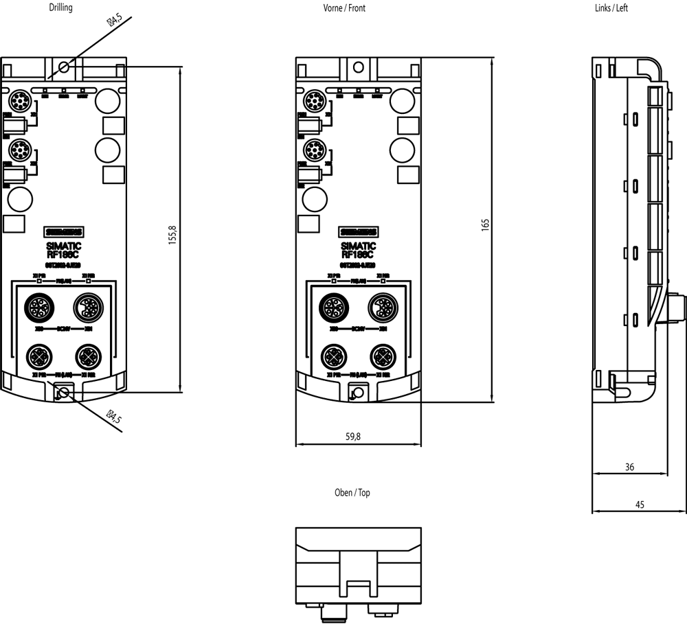 RFID Communication Module RF186C per PROFINET, Ethernet, EtherNet/IP, OPC/UA, 2 reader collegabili SIMATIC RFSistemi di identificazioneModulo di comunicazione RF186C