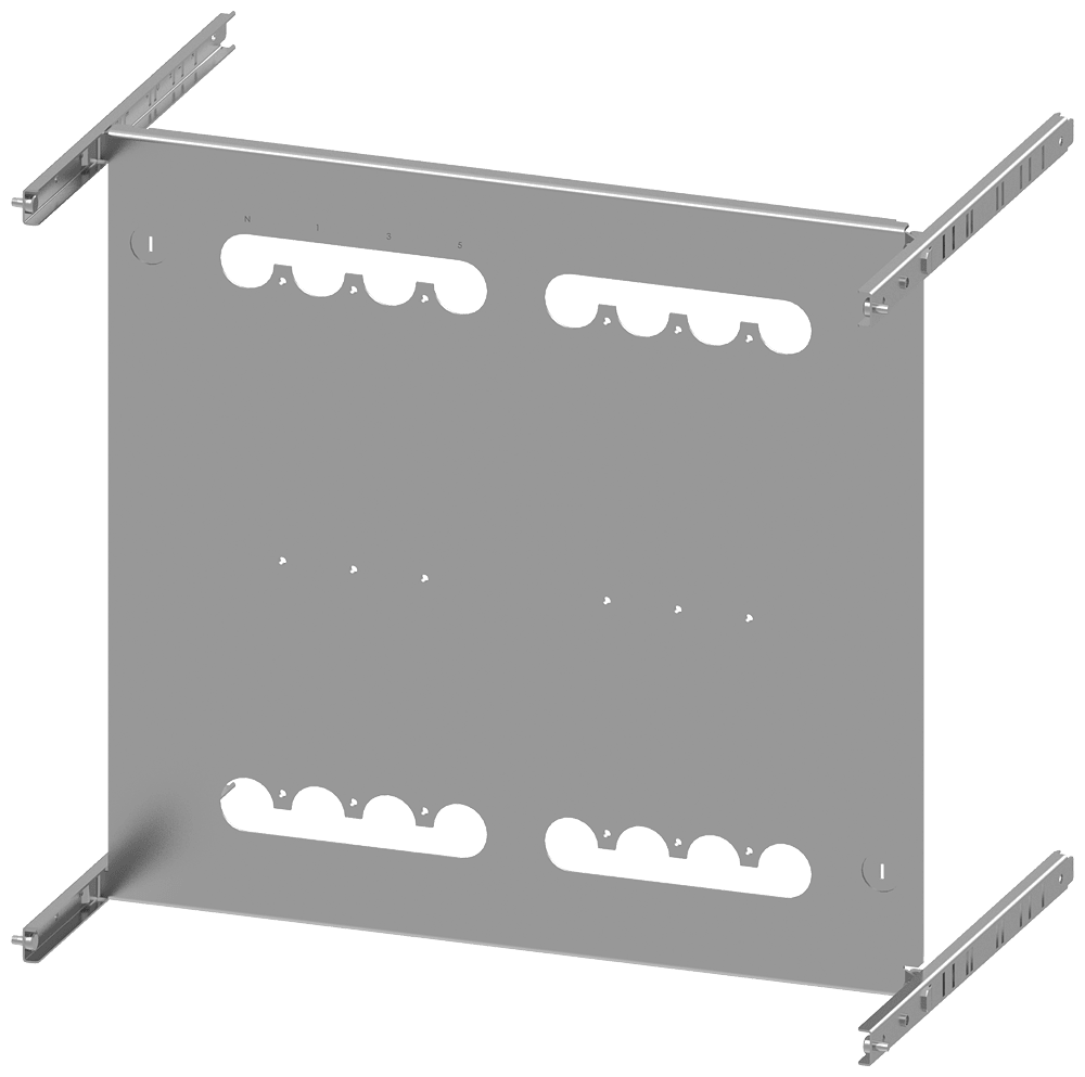 piastra di montaggio 3VA23 (400A), 3VA24 (630A), a 4 poli, installazione fissa, RCD: con; A: 600mm, La: 600mm Il quadro di distribuzione dellenergia SIVACON S4 è un sistema economico di involucri e componenti SENTRON. I quadri di distribuzione dellenergia SIVACON di Siemens si contraddistinguono soprattutto per le seguenti caratteristiche: 1. Il software di configurazione SIMARIS configuration aumenta la sicurezza della pianificazione e fa risparmiare tempo sia nella preparazione dellofferta sia nella documentazione dellimpianto. 2. Durante lesercizio un sistema di ventilazione efficiente, appositamente studiato per i componenti, impedisce surriscaldamenti e concentrazioni di calore, riduce il derating e assicura così una disponibilità costante dellimpianto. 3. La forma della segregazione interna fino a 4b può essere realizzata in modo ottimale mediante componenti standard. 4. La struttura del quadro di distribuzione dellenergia SIVACON S4 semplifica il collegamento e linstallazione degli apparecchi. 5. Grazie a portapparecchi regolabili in profondità si hanno moltissime possibilità di installazione con unaridotta varietà di componenti, vedi ad. es. la scelta del meccanismo di comando e il tipo di montaggio degli apparecchi di manovra. 6. Grazie al concetto di produzione flessibile dei quadri di distribuzione SIVACON S4 certificato secondo ISO 9001 si possono realizzare soluzioni premontate in diverse varianti costruttive (secondo necessità con o senza elementi strutturali in rame) fornibili in tempo di consegna assai breve.