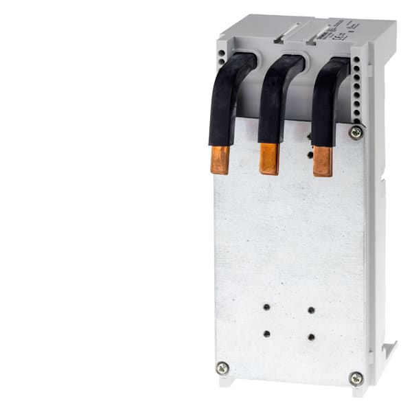 adattatore apparecchio, a 3 poli, 125 A, senza viti di fissaggio per NGG/HGG/LGG/3VA51 interasse sbarre collettrici 60mm 200x 90mm i morsetti devono essere ordinati separatamente per interruttore automatico GG: 3TC1GG20, per 3VA51: 3VA9133-0JA11 o 3VA9133-0JB11 Adattatore apparecchio SENTRON 8US1 per sistemi di sbarre collettrici per il montaggio di dispositivi di protezione. I sistemi di sbarre collettrici 8US Siemens offrono molteplici possibilità per linstallazione di apparecchi di collegamento, manovra e installazione adattabili a sbarre. La struttura modulare, così come il fissaggio meccanico e la contattazione elettrica in una sola operazione sono vantaggiosi. Grazie alla copertura di protezione a prova di dito degli adattatori e dei portapparecchiè garantita unelevata sicurezza di funzionamento. Sono dotati di una omologazione internazionale e consentono possibilità di impiego in tutto il mondo nel settore della costruzione di macchine e impianti. Il sistema di sbarre collettrici 8US1 è disponibile con interassi delle sbarre collettrici diversi. Sistemi di sbarre collettrici SENTRON - sicuri, poco ingombranti, organizzati in modo chiaro.