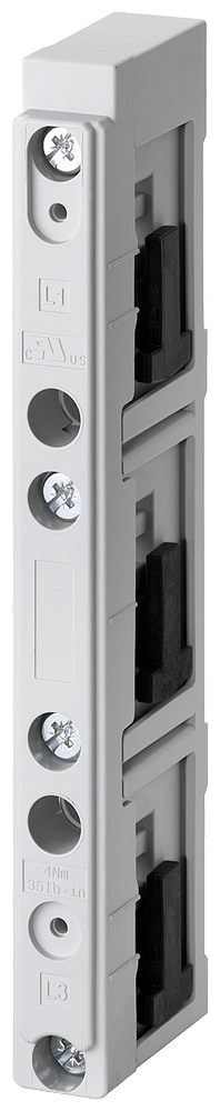 sistema di sbarre collettrici, accessori interdistanza tra le sbarre 60mm supporto per sbarre collettrici a 3 poli per sbarre 12x 5 (10)-30x 5 (10) fissaggio interno con grande distanza di isolamento in aria con grande distanza di isolamento superficialesecondo UL 508 Supporti per sbarre collettrici SENTRON 8US1 per sistemi di sbarre collettrici per il montaggio di dispositivi di protezione. I sistemi di sbarre collettrici 8US Siemens offrono molteplici possibilità per linstallazione di apparecchi di collegamento, manovra e installazione adattabili a sbarre. La struttura modulare, così come il fissaggio meccanico e la contattazione elettrica in una sola operazione sono vantaggiosi. Grazie alla copertura di protezione a prova di dito degli adattatori e dei portapparecchi è garantita unelevata sicurezza di funzionamento. Sono dotati di una omologazione internazionale e consentono possibilità di impiego in tutto il mondo nel settore della costruzione di macchine e impianti. Il sistema di sbarre collettrici8US1 è disponibile con interassi delle sbarre collettrici diversi. Sistemi di sbarre collettrici SENTRON - sicuri, poco ingombranti, organizzati in modo chiaro.