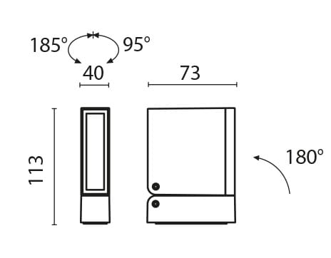 Apparecchio proiettore. Grado di protezione IP 65. Struttura in alluminio pressofuso EN AB-47100 a basso tenore di rame ad elevata resistenza all’ossidazione. Viti a brugola in acciaio INOX A4. Diffusore in vetro temprato. Apparecchio precablato con singolo cavo in neoprene con pressacavo. Guarnizioni in silicone ricotto. Con 1 led bianco 3000K CRI90 295lm. Flusso luminoso apparecchio 276lm. Potenza totale assorbita 5,2W 230V. Colore: Bianco.