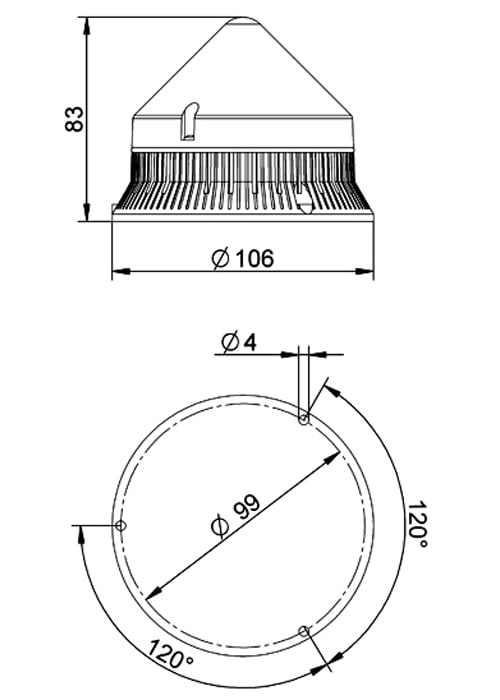 Dispositivo luminoso per applicazioni industriali a bordo macchina con diametro 90mm, versione a flash con lampada a scarica di Xenon (fornita) e segnalazione acustica integrata. Base in ABS, cupola in policarbonato. Fissaggio tramite viteria standard non fornita. Lampada a scarica di Xenon: potente flash singolo (1F) da 1J. Suono intermittente F/m 65. Frequenza: 3800Hz.