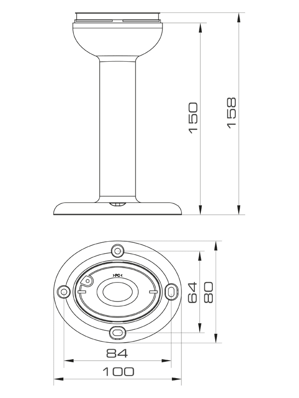 Base di fissaggio EXTENDED. Sviluppata per montaggio superficiale (colonna rialzata di 10cm).