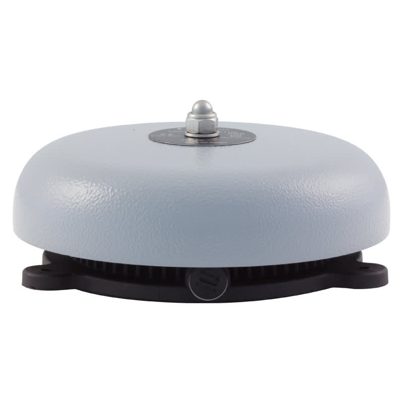 Campana elettromeccanica con base rinforzata diametro 215mm. Sviluppata con unità elettromagnetica a pistone battente, genera un caratteristico suono continuo. La robusta struttura in acciaio della campana conferisce un’elevata resistenza agli impatti e fornisce un‘alta protezione contro l’ingresso di polveri ed acqua (IP66), rendendola idonea anche per utilizzo gravoso. Campana in acciaio e flangia in poliammide. Dotata di base piana, il fissaggio avviene con viteria standard non fornita.