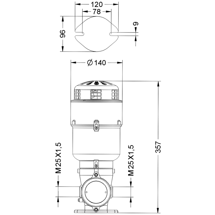 Sirene elettromeccaniche antideflagranti di dimensione maggiore rispetto alla gamma MINICELERE, progettate e costruite per tutte quelle applicazioni dove è necessario un maggiore livello di suono. I dispositivi della gamma SUPERCELERE sono una combinazione unica di precisione e tecnologia uniti a 30 anni di esperienza che Sirena ha maturato nel settore delle sirene elettromeccaniche. Sirene elettromeccaniche antideflagranti per impiego in aree del Gruppo II con atmosfera esplosiva per zona 1, 2, 21 e 22.II 2GD Ex d e IIC T6 Ex tD A21 IP66 T85 °C . Omologazione: CESI 10 ATEX 038 X . Corpo in lega di alluminio esente da rame. Verniciatura poliestere RAL 3020. Intensità del suono: max. 107 dB(A)1m. Protezione: IP 66. Temperatura massima superficiale: T6