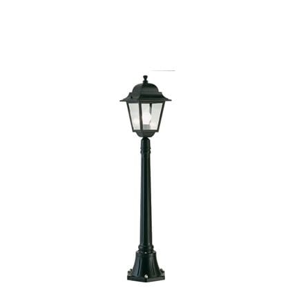 Palo in pressofusione di alluminio. Diffusori in vetro trasparente. Altezza max lampada: 210mm. Triangolo di fissaggio a terra. Alimentazione 230 V ~ 50 Hz. Classe di protezione: IP43 Potenza massima lampade: 100W