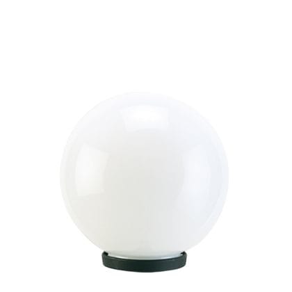 Testa-palo in termoplastico. Sfera opale in PMMA Ø 20cm. Adattatore per pali Ø 60mm. Altezza max lampada: 170mm. Alimentazione 230 V ~ 50 Hz. Classe di protezione: IP44 Potenza massima lampade: 40W