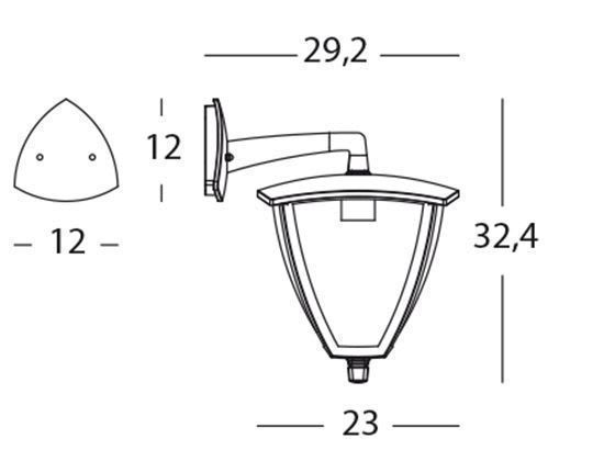 Struttura in pressofusione di alluminio. Diffusore in termoplastico trasparente. Controbase e accessori per il fissaggio. Portalampada in porcellana con attacco E27. Altezza lampada: max 150mm. Lampada esclusa. Alimentazione 230V ~ 50Hz. Classe di protezione: IP43 Potenza massima lampade: 60W