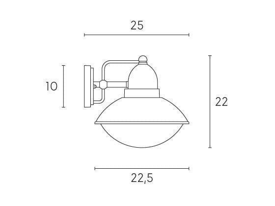 Struttura in pressofusione di alluminio. Controbase e accessori per il fissaggio. Portalampada in porcellana con attacco E27. Adatta per lampade a risparmio energetico. Altezza max lampada: 160 mm. Lampada esclusa. Alimentazione 230V. Classe di protezione: IP44 Potenza massima lampade: 60W