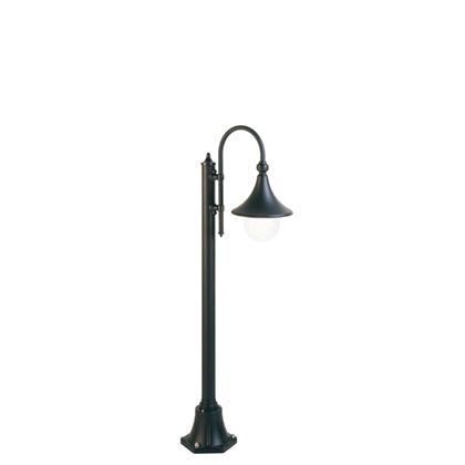 Palo in pressofusione di alluminio. Diffusore in termoplastico trasparente. Triangolo di fissaggio a terra. Altezza max lampada: 150mm. Alimentazione 230 V ~ 50 Hz. Classe di protezione: IP43 Potenza massima lampade: 60W
