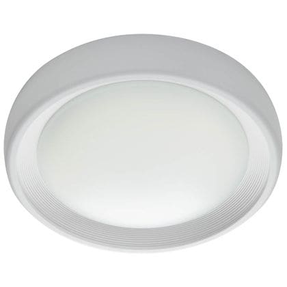Plafoniera in termoplastico. Diffusore in termoplastico opalino. Consumo 13W. Flusso luminoso nominale: 1550 lumen. Flusso luminoso reale: 1420 lumen. Classe di efficienza energetica: E Temperatura di colore: 4000°K. Luce naturale. illuminazione con 54 LED SMD 2835. Alimentazione: 230V. Classe di protezione: IP65 Potenza massima lampade: 13W