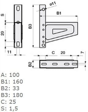 Adatto per larghezza sistema di supporto cavi - 100...100 mm