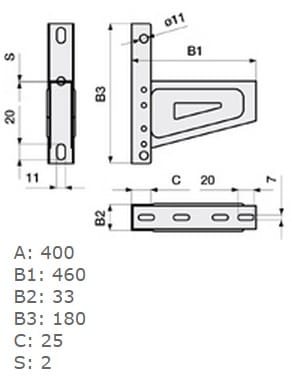 Adatto per larghezza sistema di supporto cavi - 400...400 mm