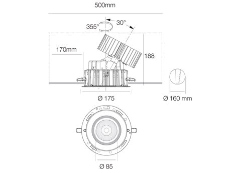 Proiettore da incasso orientabile a LED in bassa luminanza. Corpo in alluminio verniciato nero. Dissipatore in estruso dialluminio anodizzato nero. Staffa orientabile graduata in metallo verniciato nero. Orientabilità sul piano orizzontale di 355° e di30° su quello verticale con sistema di regolazione micrometrica. Doppio blocco del puntamento. Sistema di dissipazione passiva. LED Chip on Board alta efficienza Ra84. Riflettore secondario in policarbonato con finitura inferiore metallizzata matt e finiturasuperiore nera texturizzata antiabbagliamento; gruppo ottico primario completo di ottica di precisione a sfaccettatureconvesse in policarbonato metallizzato ad alta specularità con trattamento “Scratch Proof Formula” anti graffio. Sistema di aggancio ultra rapido no tools per installazioni in controsoffitti da 0,5 a 30mm. Da completare con anello decorativo. Completo di driver nelle versioni: elettronica. Lampada: LED 54W 3000K 36°.