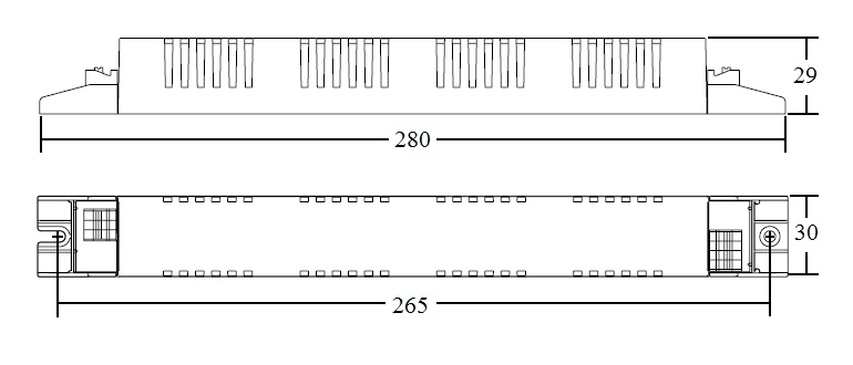 Alimentatore elettronico da incorporare. Utilizzabile per apparecchi di illuminazionein classe di protezione I e II. Adatto al collegamento con apparecchi diemergenza in base alla EN 60598-2-22. Morsetti ad innesto rapido.Morsetti di entrata ed uscita contrapposte (sezione connettori: 0,5÷1,5 mm2).Fissaggio dell’alimentatore tramite asole per viti. Accensione con preriscaldo peruna lunga durata della lampada.Protezioni: extra tensioni di rete; disconnessione della lampada; lampada guasta;lampada fine vita. Classificazione EEI = A2.