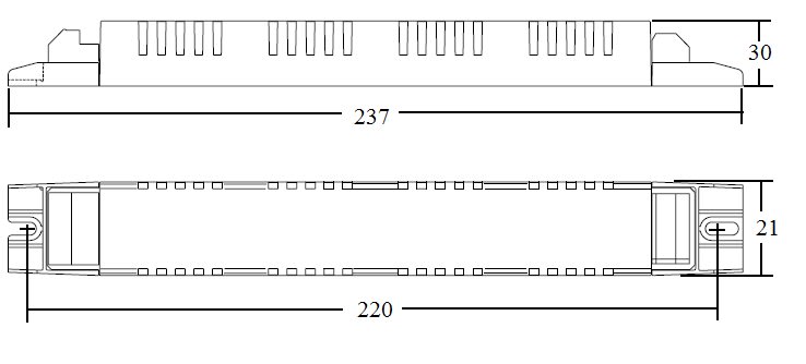 Alimentatore elettronico da incorporare. Utilizzabile per apparecchi diilluminazione in classe di protezione I e II. Adatto al collegamento con apparecchidi emergenza in base alla EN 60598-2-22. Morsetti ad innesto rapido. Morsetti dientrata ed uscita contrapposte (sezione connettori: 0,5÷1,5 mm2). Fissaggiodell’alimentatore tramite asole per viti. Accensione con preriscaldo per una lungadurata della lampada. Protezioni in caso di disconnessione della lampada,lampada guasta o a fine vita. Protezione contro le extratensioni di rete.Classificazione EEI = A2