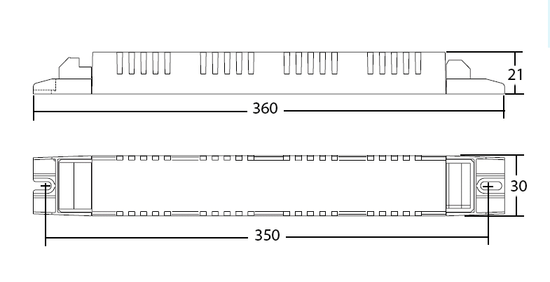 Alimentatore elettronico da incorporare. Utilizzabile per apparecchi diilluminazione in classe di protezione I e II. Adatto al collegamento con apparecchidi emergenza in base alla EN 60598-2-22. Morsetti ad innesto rapido. Morsetti dientrata ed uscita contrapposte (sezione connettori: 0,5÷1,5 mm2). Fissaggiodell’alimentatore tramite asole per viti. Accensione con preriscaldo per una lungadurata della lampada. Protezioni in caso di disconnessione della lampada,lampada guasta o a fine vita. Protezione contro le extratensioni di rete.Classificazione EEI = A2.