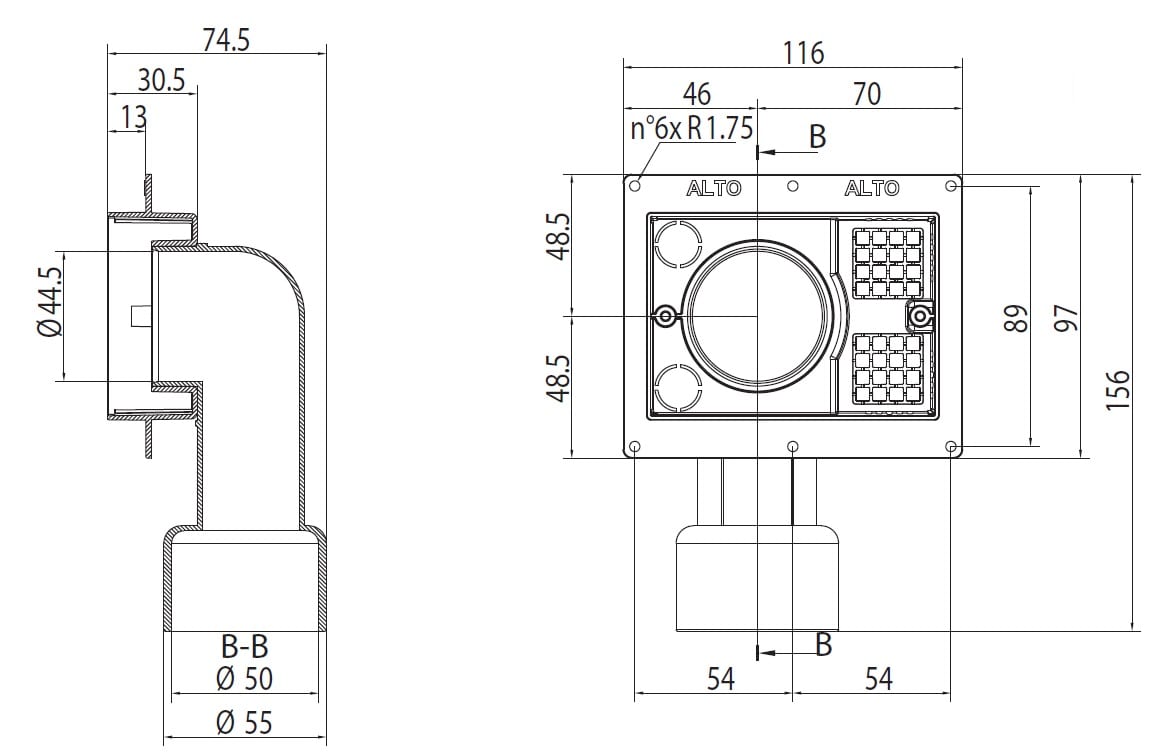 CONTROPRESA UNIVERSALE raccordo curvo con coperchio