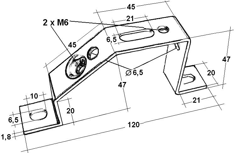TEKNOMEGA SRL - TKGDIN1036 SUPPORTO INCLIN. X GUIDA DIN FORI M6+ASO - DIN1036
