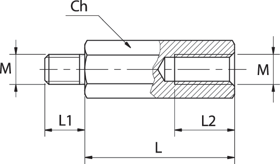 Distanziatore filettato maschio, marca TEKNOMEGA SRL, modello TKGDZM0995 - DISTANZIALE METALLICO H20MM M3