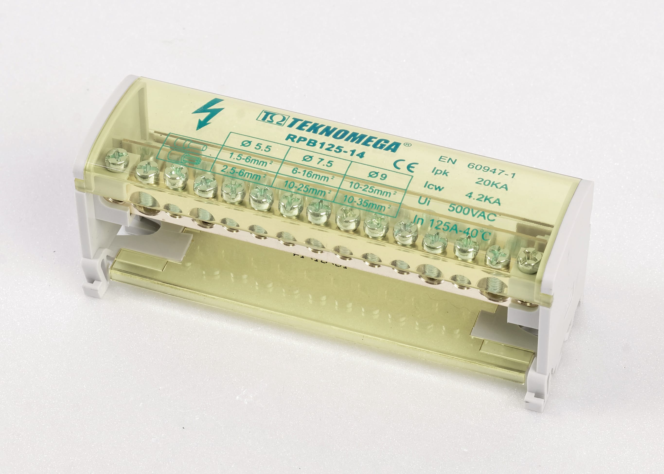 TEKNOMEGA SRL - TKGRPB1005 RIPARTITORE MORSETTIERA BIPOLARE125A 14 - RPB1005