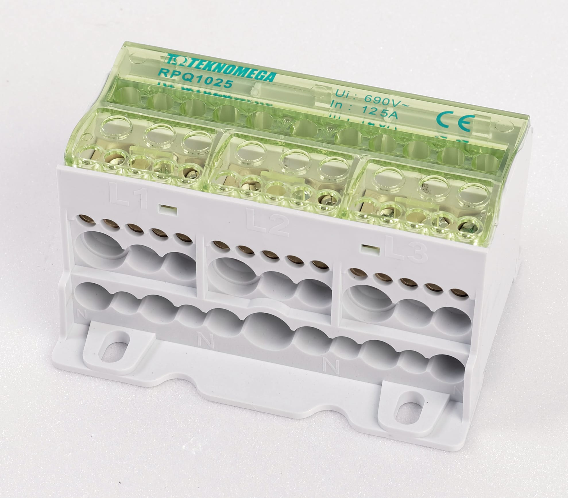 Morsettiera di distribuzione, marca TEKNOMEGA SRL, modello TKGRPQ1025 - RIPARTITORE COMPATTO QUADRIPOL.100 125A7