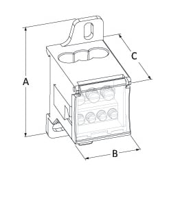 Morsettiera di distribuzione, marca TEKNOMEGA SRL, modello TKGRPU2995 - RIPARTITORE COMPATTO UNIPOL. 80A 6OUT