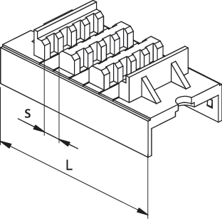 Modulo portasbarre per quadri di distribuzione, marca TEKNOMEGA SRL, modello TKGTOP1005 - KIT SUPPORTO 2 BARRE 5MM TRIFASE