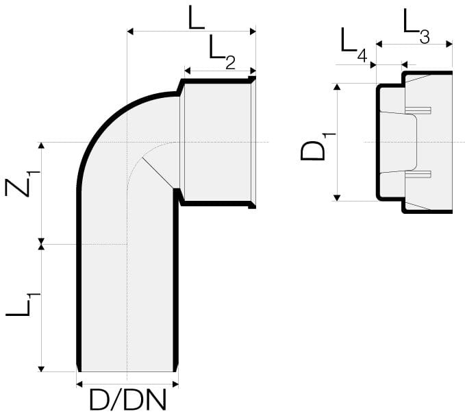 HTSW curve tecnica con tappo per tubazioni Triplus