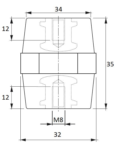 ISOLATORI E PORTASBARRE Altezza: 35 Tipo: Ottagonale Inserto: M8