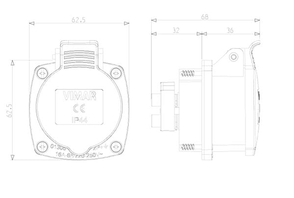VIMAR SPA - VIW01306 PRESA RICAMBIO 2P+T16A-6H200-250V AVVOL. - 01306
