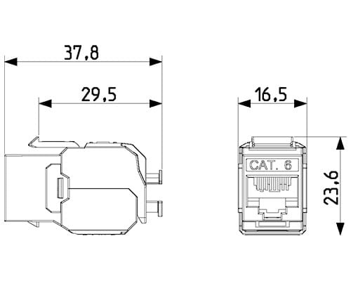 Connettore RJ45 Cat. 6, schermato, per pannello di permutazione 03024.E e 03303.E, cablaggio universale T568A/B, 8 contatti, morsetti ad incisione d'isolante senza utilizzo di utensile