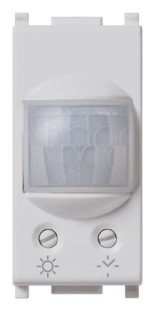 Interruttore con sensore di presenza ad infrarossi per accensione luci, soglia del sensore crepuscolare e ciclo di temporizzazione regolabili, uscita a relè NO 6 A 230 V~, alimentazione 230 V~ 50-60 Hz, Silver