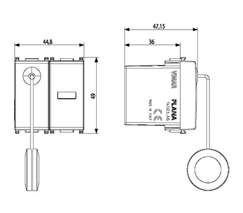 Pulsante di chiamata a tirante per circuiti NO e NC con spia di rassicurazione rossa, materiale antibatterico, bianco - 2 moduli. Tensione di alimentazione: 24 V d.c. ± 20% SELV. Assorbimento: 30 mA max.