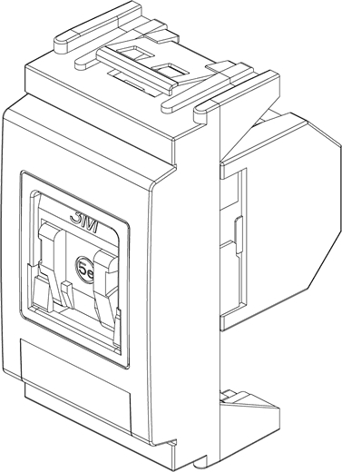 Presa RJ45 con connettore 3M Cat. 5e, non schermata, cablaggio universale T568A/B, 8 contatti, morsetti ad incisione d'isolante senza utilizzo di utensile, bianco Presa con connettore 9 poli, SUB D, a saldare, grigio - 2 moduli