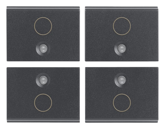 Quattro mezzi tasti intercambiabili 1 modulo, simbolo O, grigio.