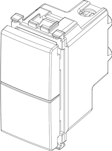 Due pulsanti indipendenti 1P NO + 1P NO 10 A 250 V~, bianco. Consentono la chiusura contemporanea dei due circuiti e quindi non sono adatti all'inversione di marcia di motori (tapparelle, cancelli, etc.)