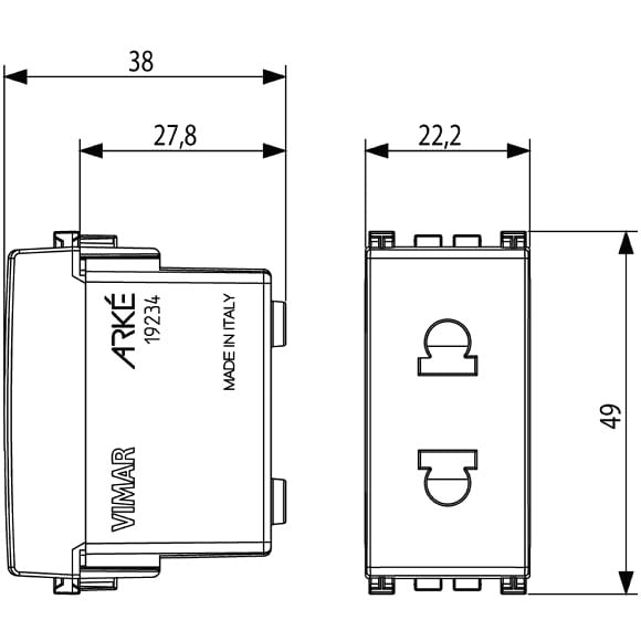 VIMAR SPA - VIW19234.B PRESA SICURY 2P 16A USA+EU D4,8MM BIANCO - 19234.B